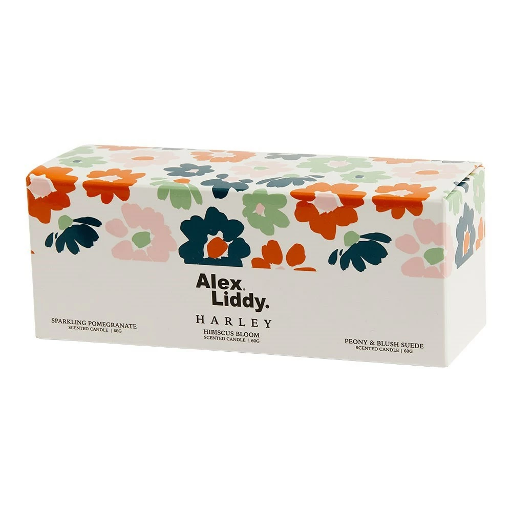 Style how you want with the Alex Liddy Harley II Votive Candles. Featuring three delicious inspiriting scents of florals and citruses and can be beautifully grouped together or style them in separate rooms. The votive candles arrive in three textural coloured ribbed jars for contemporary styling: Blue, Orange and Pink. The Alex Liddy Harley II collection is a stylish and functional homewares collection with gorgeously curated designs of playful florals and gingham in navy, soft pink, mint green, and burnt orange. The Harley II is the second series of the Harley collection offering new and improved variety, innovations, and designs. This collection is beautifully packaged and ready for gifting, making it the perfect choice for birthdays and other special occasions.