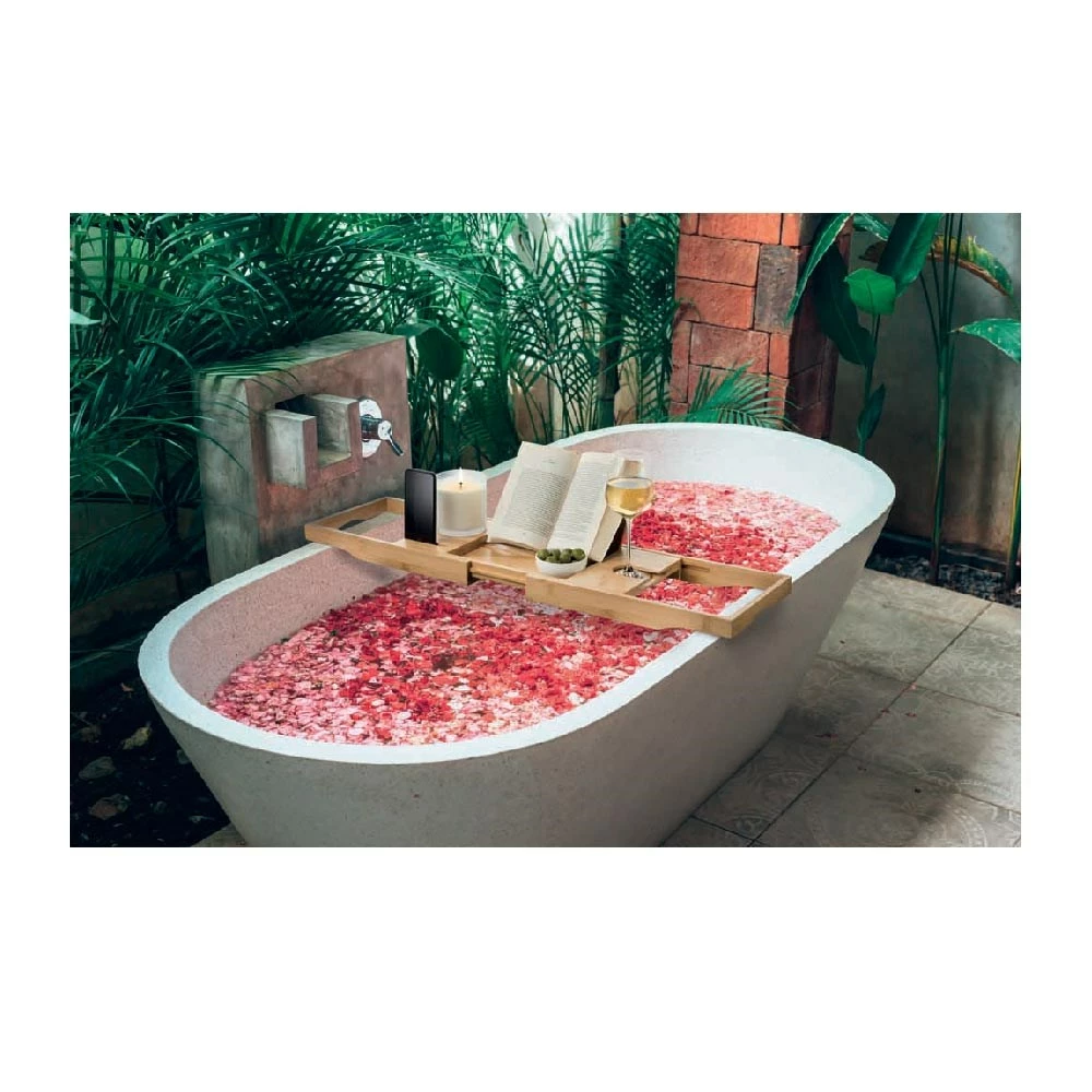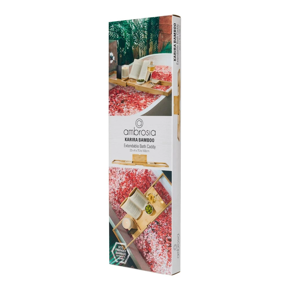 Transform your bath time ritual with the fabulous Ambrosia Karira Extendable Bath Caddy Bamboo