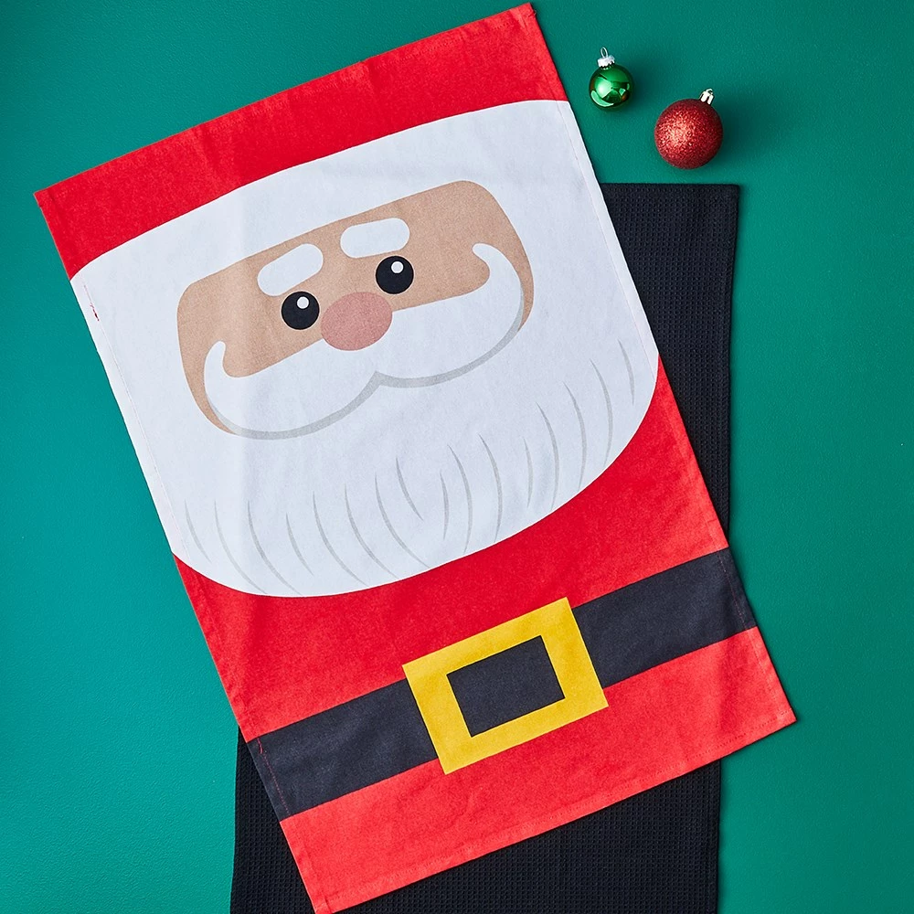 Ambrosia Santas Workshop IV Set Of 2 Tea Towel Santa