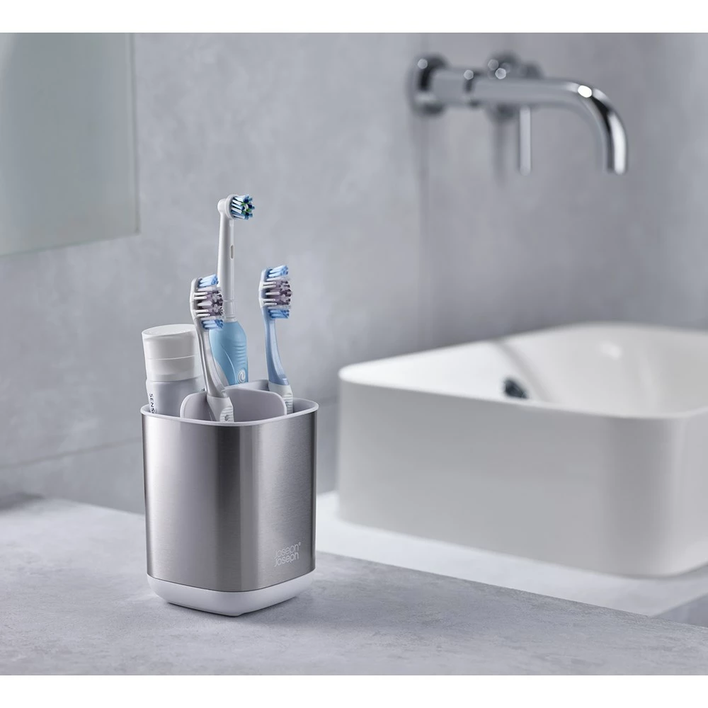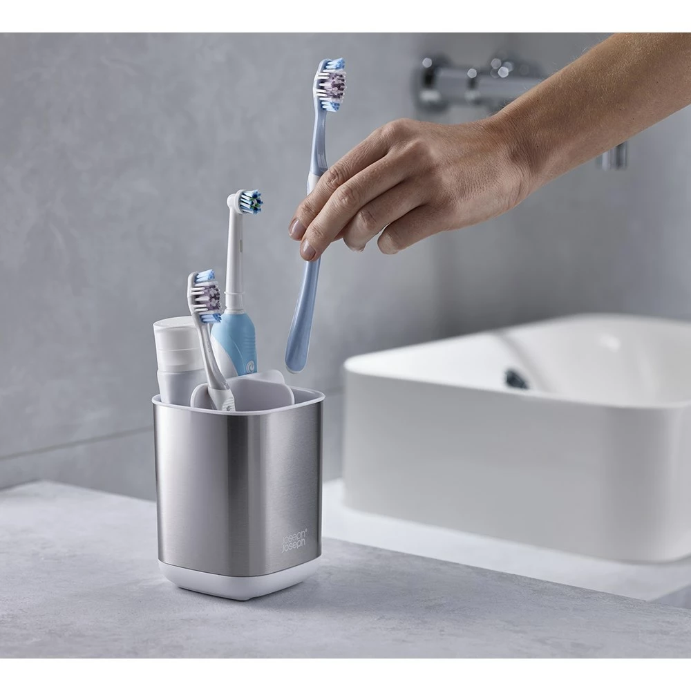 Keep an organised bathroom with the Joseph Joseph Easystore Steel Toothbrush Caddy