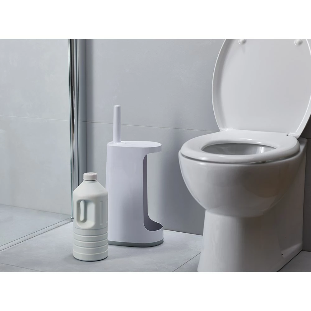 The handy Joseph Joseph Flex Store Toilet Brush with Caddy Grey Blue includes storage for toilet rolls too
