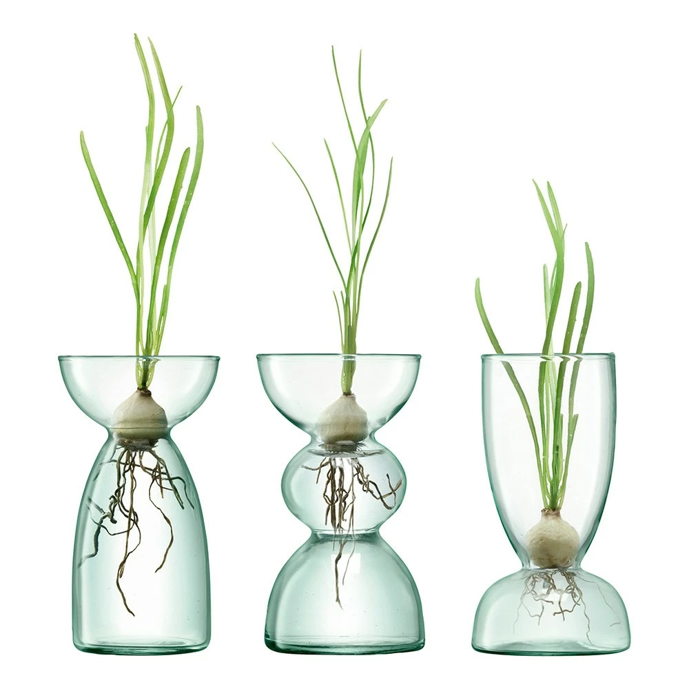 The distinctive shapes of the LSA Canopy Recycled Glass Trio Vase Set will add a burst of natural beauty to your home décor