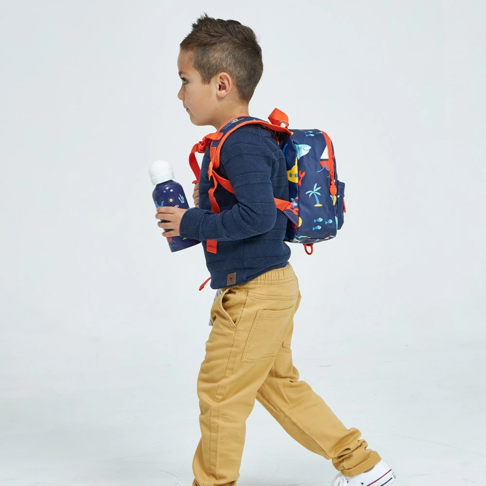 Encourage your little one to stay hydrated with the bright and playful Penny Scallan Anchor Stainless Steel Drink Bottle 500ml. Made from premium quality stainless steel that boasts resilience with everyday use, this bottle is perfect for carrying water to school, picnics and long car journeys. It comes equipped with a spill-proof lid for easy, mess-free transportation and is a must-have addition to your kids back-to-school kit. Offering a generous fill capacity of 500ml, the Penny Scallan Drink Bottle presents the ideal solution to keeping your kid hydrated. Its design shows off a bold blue background dispersed with cute and colourful sailing boats, sharks and other ocean creatures that will bring joy to your little one’s day. Coordinate the bottle with additional Anchor-themed products from Penny Scallan for the ultimate collection of high-quality kid’s accessories.