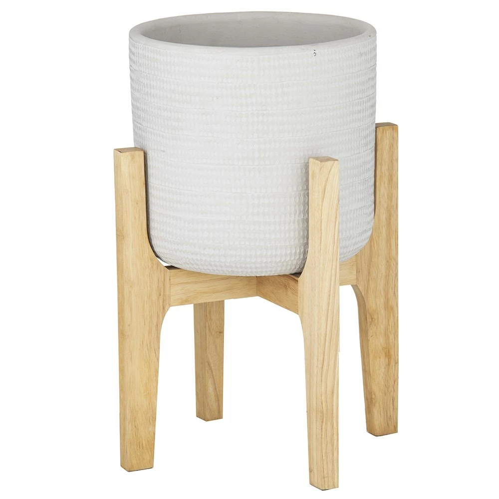 You’re sure to make a statement when you display lush greenery in this gorgeous Rogue Emani Planter 32x48cm Dark Grey. A beautifully crafted wooden stand elevates the Rogue Emani Planter 32x48cm Dark Grey pot closer to eye level for a more powerful visual impact. In contrast to the smooth wooden frame, the pot’s ceramic body boasts a highly textured, tactile surface. A modern matte finish in a tranquil Dark Gray shade creates a captivating focal point anywhere in the home. Dress up the planter with your favourite faux greenery and let it add a refreshing air to its surroundings year after year. Available in various shades of grey and sizes, the Rogue Emani Planter 32x48cm Dark Grey is guaranteed to make a charming style statement.