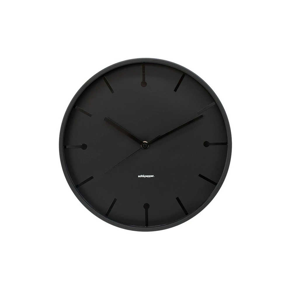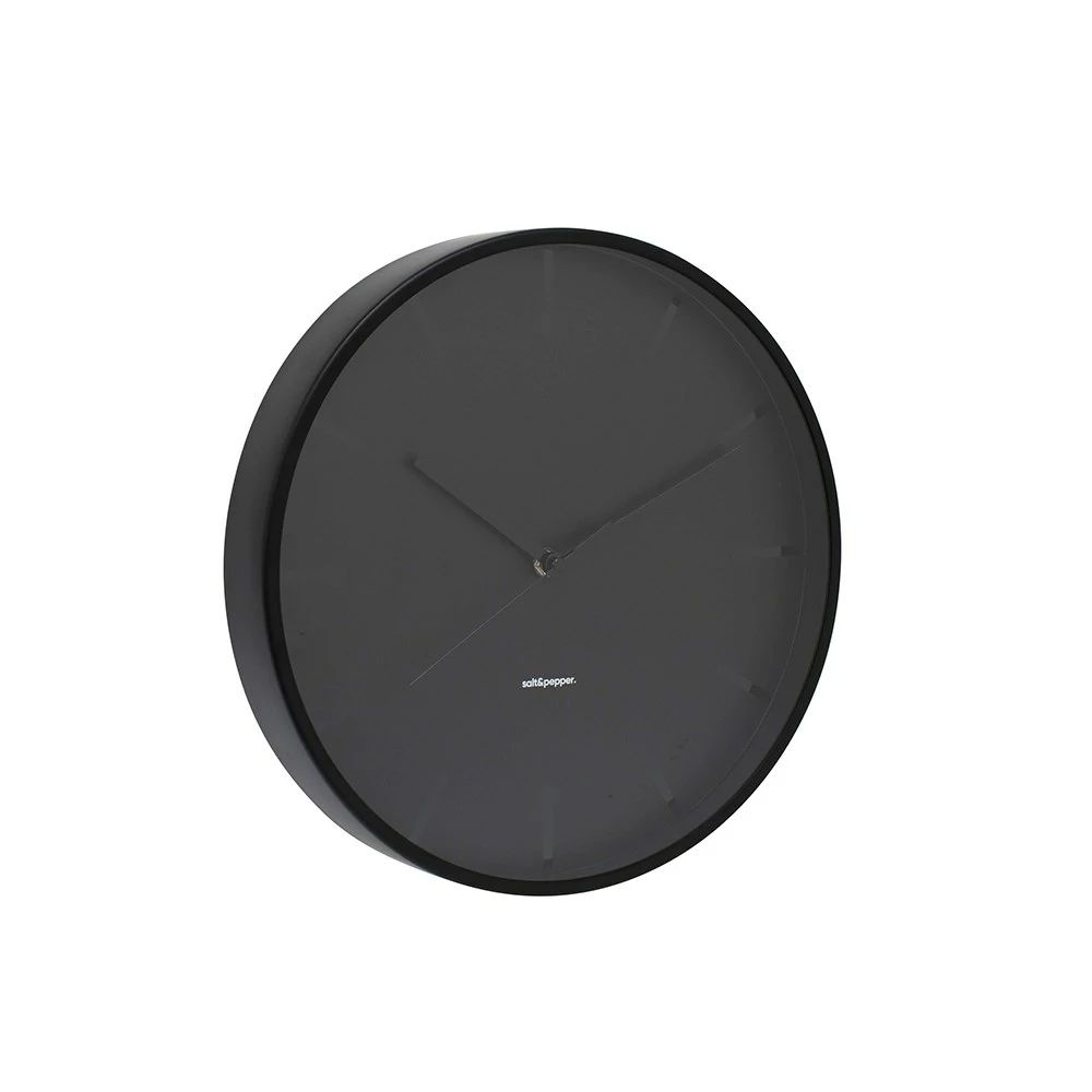Elevate your space with the addition of a stylish wall clock like the Salt & Pepper Annex Clock Black. A must-have home décor piece, the Salt & Pepper Annex Clock features an all-black face, frame and arms for a sleek minimalist look that willl slot into a wide host of existing environments. With a silent sweeping movement, you can be sure that the clocks surroundings will stay peacefully quiet. Whether you’re looking for a focal piece or something to tie the rest of your décor together, the Salt & Pepper Annex Clock Black will suit any decorating style and look incredible in hallways, studies, lounge areas and bedrooms. The Salt & Pepper Annex Wall Clock Black requires 1 x AA battery.