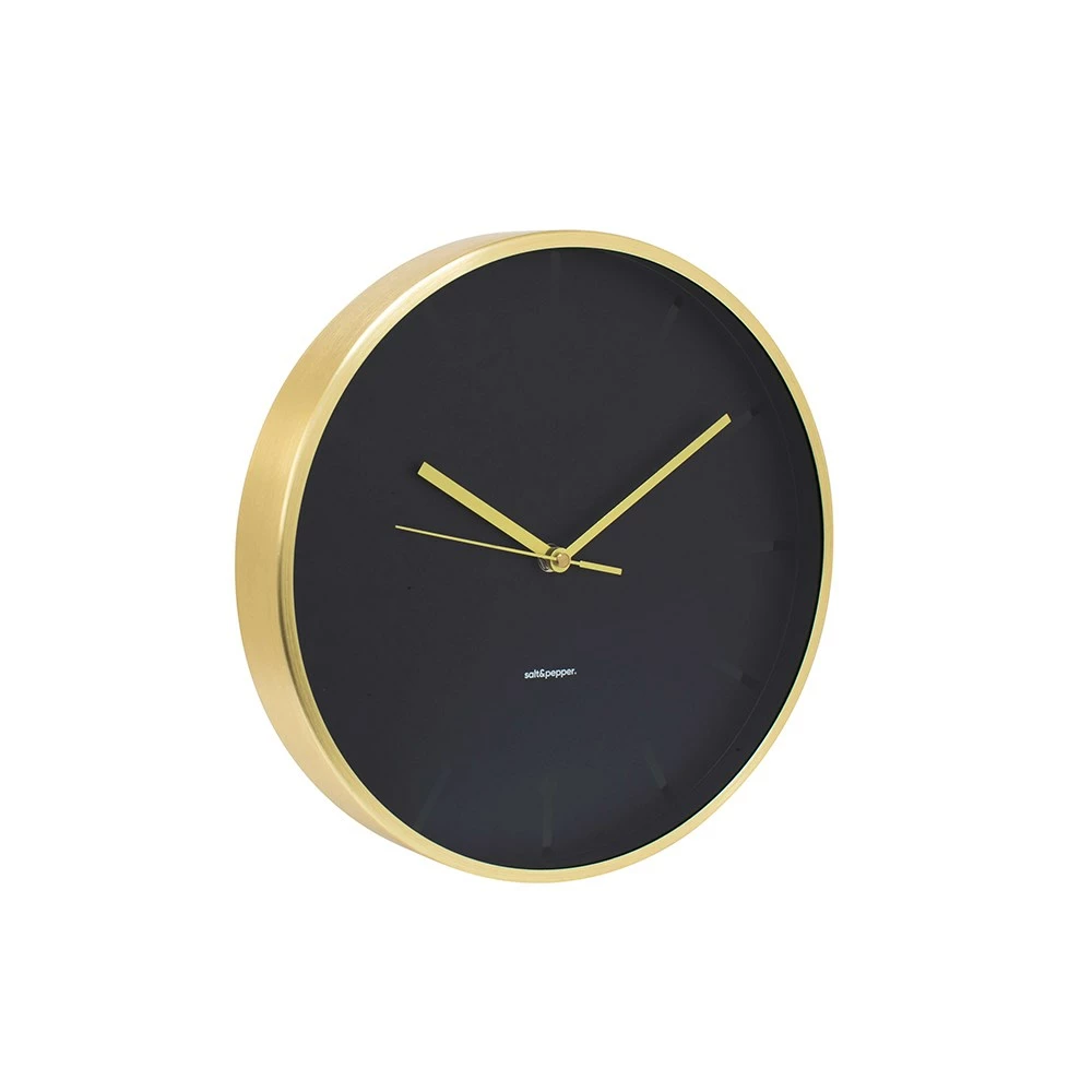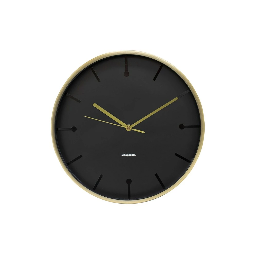 Elevate your space with the addition of a stylish wall clock like the Salt & Pepper Annex Clock Gold. A must-have home décor piece, the Salt & Pepper Annex Clock features an all-black face and a gold frame and arms for a sleek minimalist look that willl slot into a wide host of existing environments. With a silent sweeping movement, you can be sure that the clocks surroundings will stay peacefully quiet. Whether you’re looking for a focal piece or something to tie the rest of your décor together, the Salt & Pepper Annex Clock Gold will suit any decorating style and look incredible in hallways, studies, lounge areas and bedrooms. The Salt & Pepper Annex Wall Clock Gold requires 1 x AA battery.