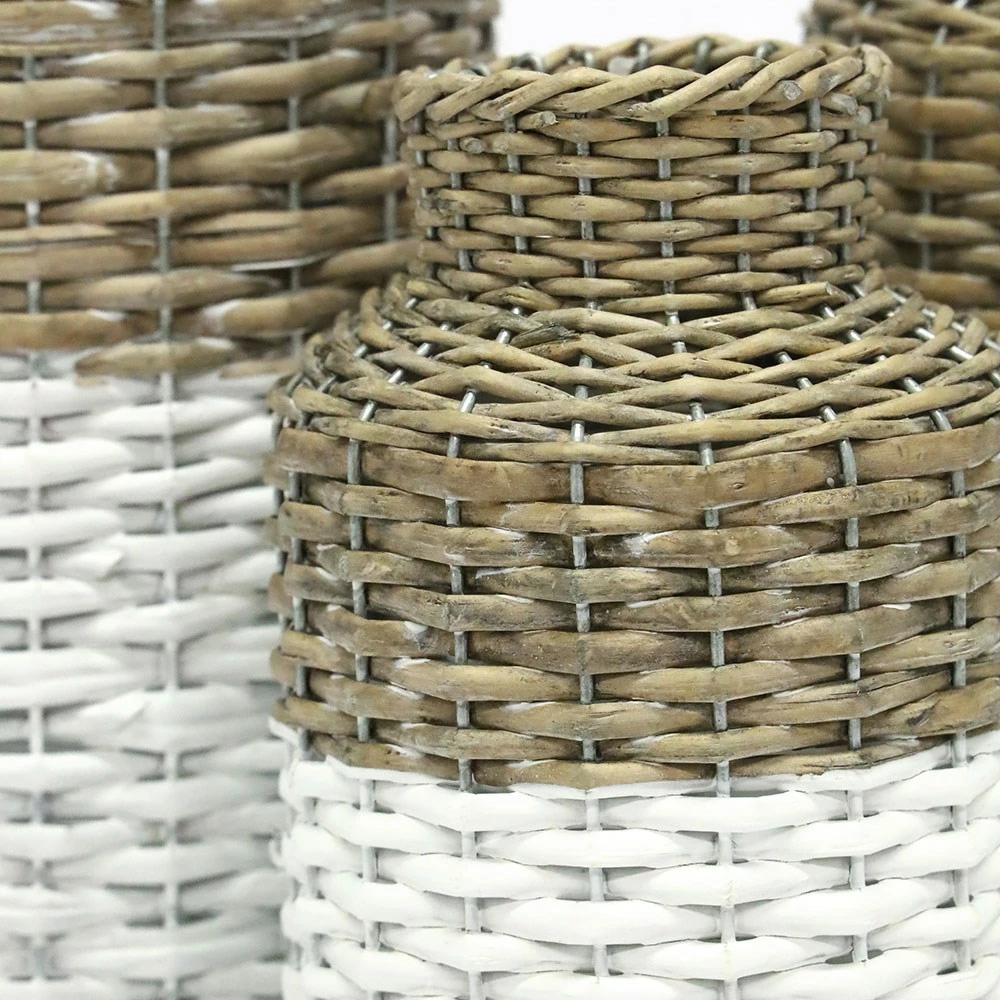 With the Stoneleigh Roberson Harper Woven Vase Medium Natural & White, your home will be filled with an air of artisan style. With an expertly crafted wicker construction, the Stoneleigh Roberson Harper Woven Vase Medium Natural & White showcases an intriguing silhouette with bold curves and contours. Embracing the natural tones of the materials used, the vase contrasts its lower half with a refreshing whitewash, upgrading its traditional design with a more contemporary aesthetic. A stylish vase that looks gorgeous in any area around the house, the Stoneleigh Roberson Harper Woven Vase Medium Natural & White comes in three different sizes. Use it as an impactful standalone decorative accessory or add some sprigs of dry greenery or faux flowers for an added dose of charm.